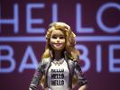 Barbie is about to talk back. She has talked before, with a pull-string in her back, so she could utter a phrase or two, like, "Let's have a pizza party!"