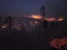 Thousands of residents were displaced as firefighters scouted the mountainsides around a village looking for opportunities to slow a wildfire that burned at least 150 homes and other structures.