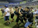 At least twelve people were killed and dozens more injured when stampeding soccer fans pushed through one of the access gates at a quarterfinal match in the Salvadoran league Saturday.