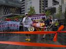 Protesters were required to wear numbered badges. The demonstration was against the proposed reclamation and construction of trash-processing facilities.