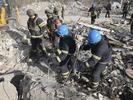 Rescuers searched for survivors in the remains of the only cafe in the village of Hroza. Around 60 people, including children, were attending a wake at the cafe when the missile hit, officials said.
