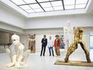 Art works by the American actor and Australian musician are featured in an exhibition of sculptures and ceramics. Both acknowledged being excited and nervous about presenting their art in public.