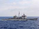 The USS Antietam and USS Chancellorsville are conducting a routine transit, the U.S. 7th Fleet said. It comes at a time when tensions have kept the waterway particularly busy.