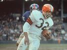 During his nine-year Hall of Fame career with the Cleveland Browns, Jim Brown averaged more than a hundred yards rushing in every regular season game. He's the only player in NFL history to do that.