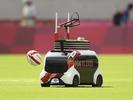 The field support robot will be fetching all sorts of objects during the weekend's track and field events. It's one of several robots designed to make the games more user-friendly and efficient.