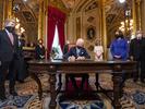 "Will we meet the moment like our forbearers have?" the newly sworn-in president asked Americans during the star-studded inaugural celebration. "I believe we must and I believe we will."