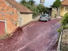 Cascades of red wine flood a city's streets in Portugal after huge tanks rupture
